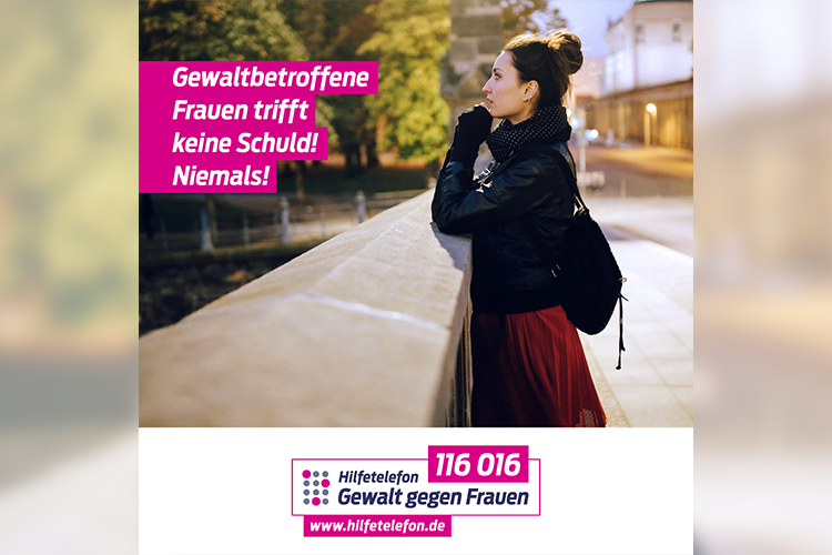 Darstellung einer Frau mit Hinweis auf Hilfetelefon Gewalt gegen Frauen - Telefonnummer 116 016